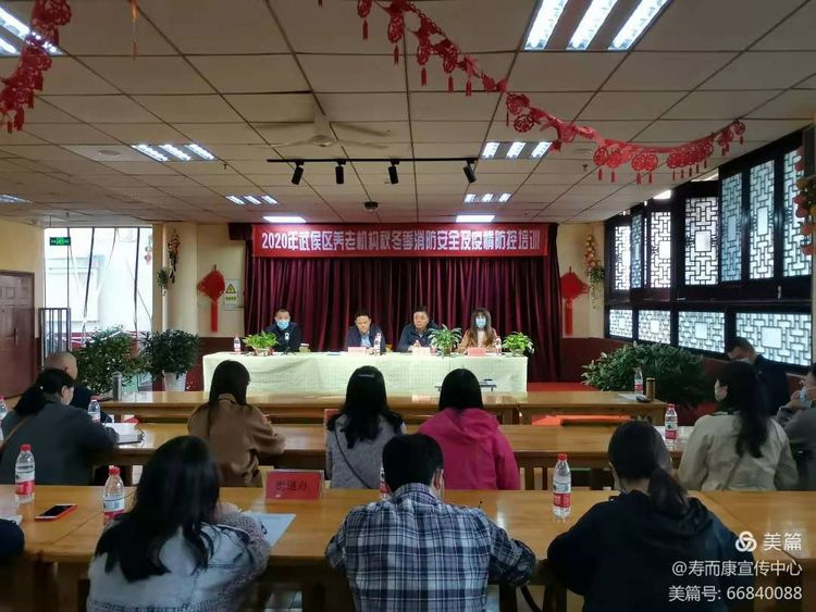 2020年11月19日下午,武侯區民政局組織全區30余家養老企業(yè)和所屬11個(gè)街道的民政負責人在"武侯區壽而康老年頤養中心"開(kāi)展"養老機構冬季疫情防控、消防安全培訓演練"活動(dòng)。