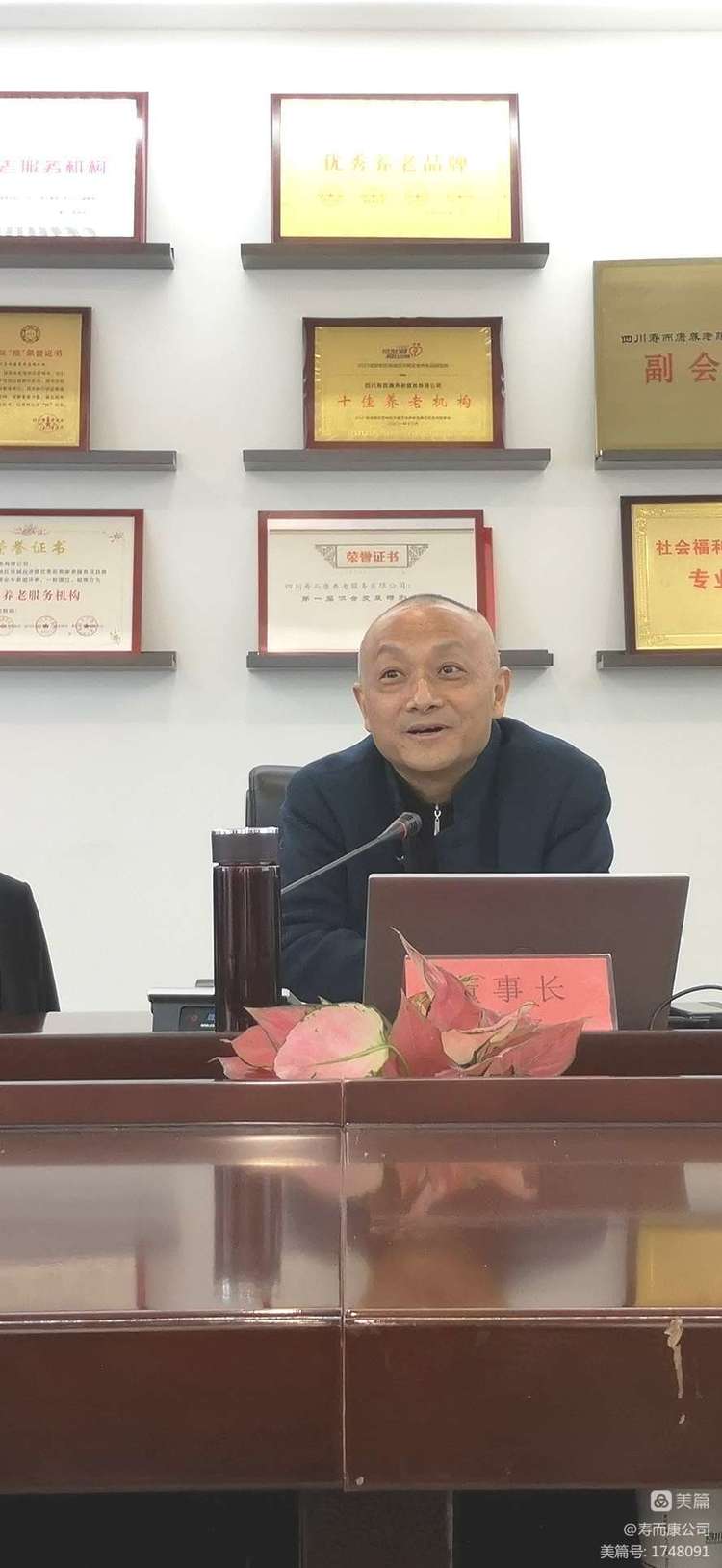 壽而康養老服務(wù)有限公司董事長(cháng)兼總裁曹野,董事長(cháng)助理曹玉亭、副總裁任孝忠、曹?chē)?、付潔等領(lǐng)導在主席臺就座。